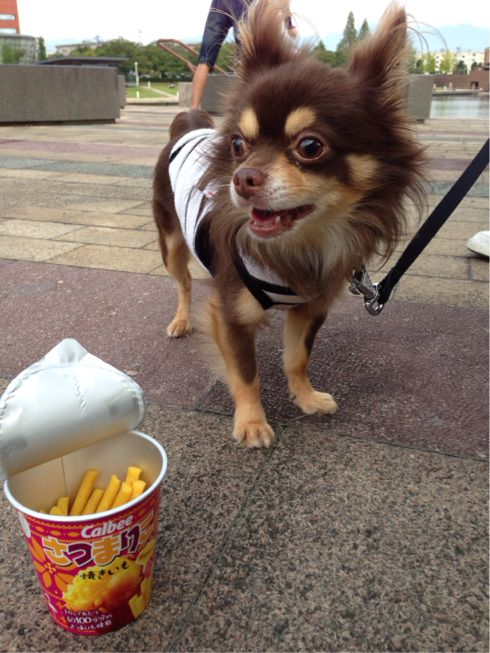 お友達ワンコにブロッコリーやサツマイモをあげていたら