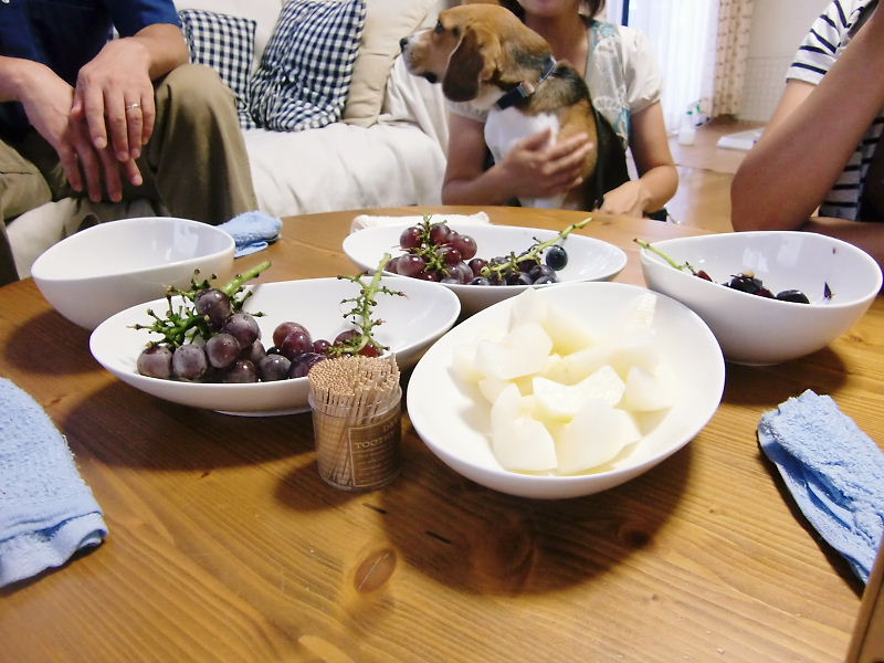 リビングに移動して葡萄と梨をいただきました。