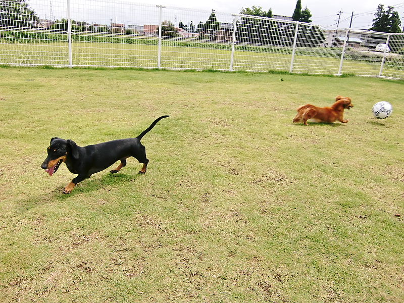 ランではサッカーする人とワンコ達。