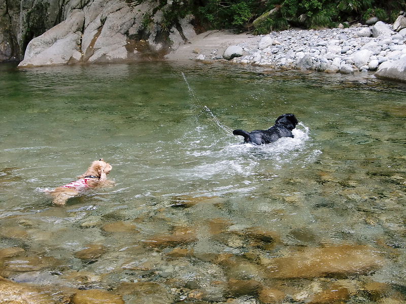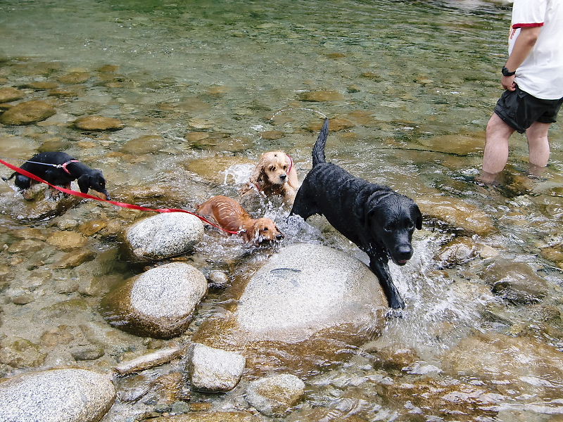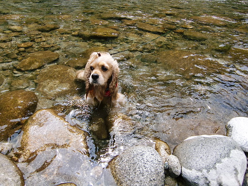 水が冷たかったけど自ら川に入っていっただる。