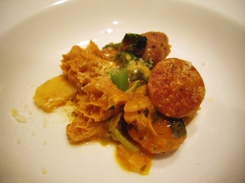 『春野菜とトリッパ、サルシャチャのトマト煮込み』