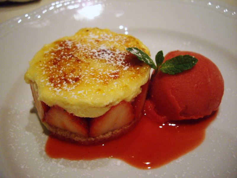 『イルデスコ風イチゴのショートケーキと木苺のソルベ』