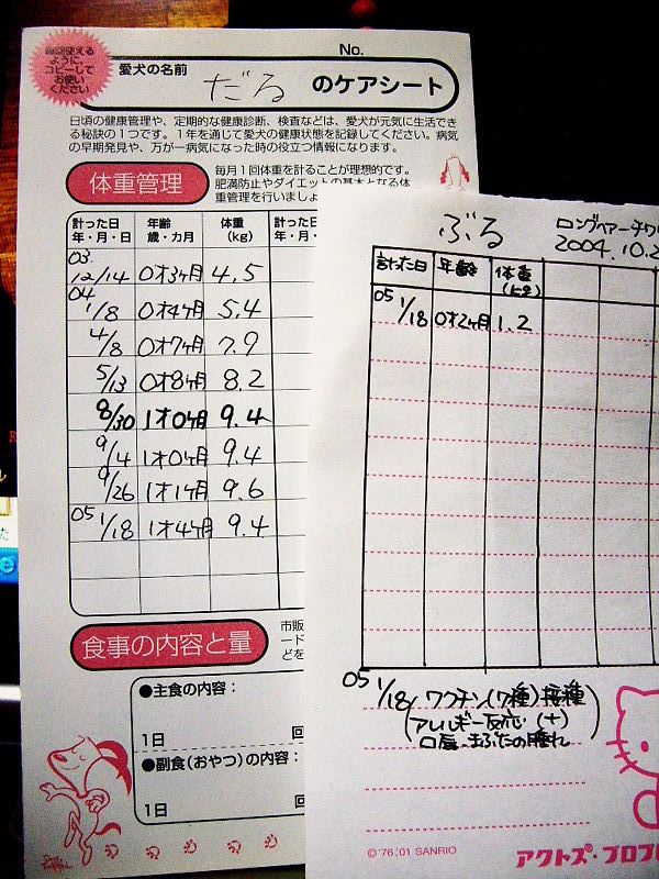 病院へ行った時に測ってもらった体重を記入していたんですね~。