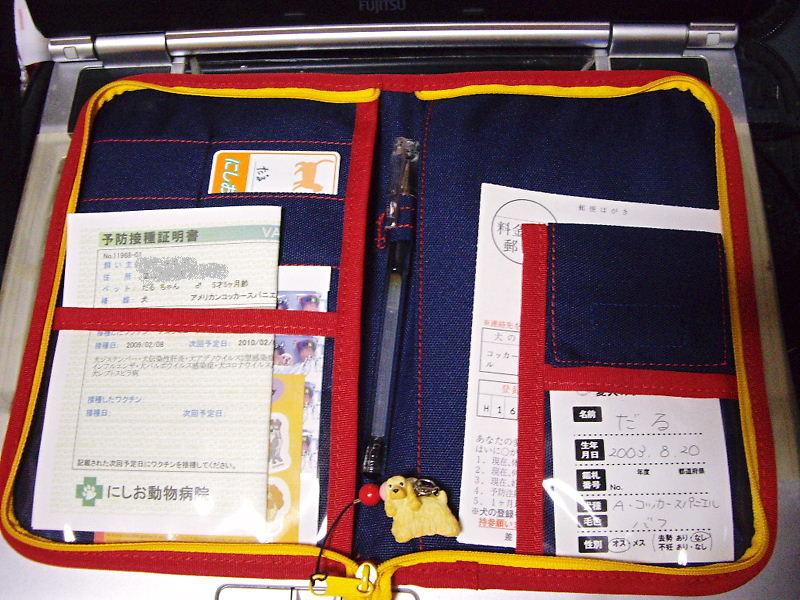 診察券や予防接種証明書、鑑札などをまとめておく。って