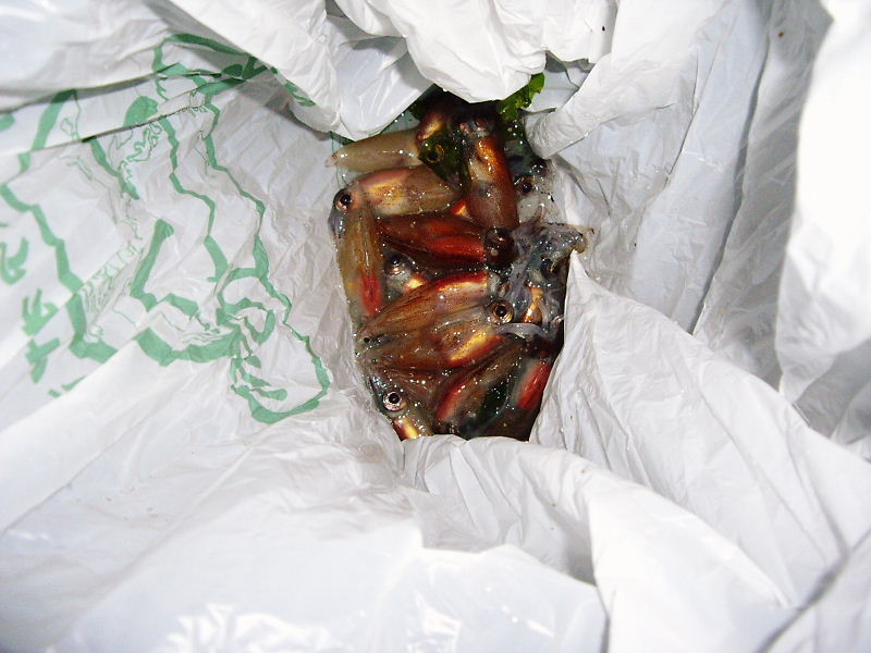 スイスイ泳ぐホタルイカをポツポツ獲れました。