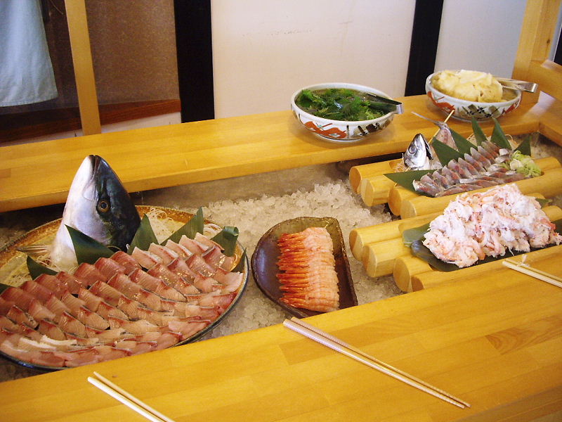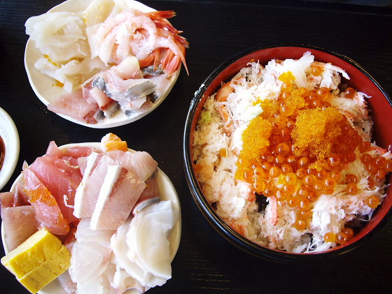 だるパパは「カニいくら丼」とお刺身2皿。