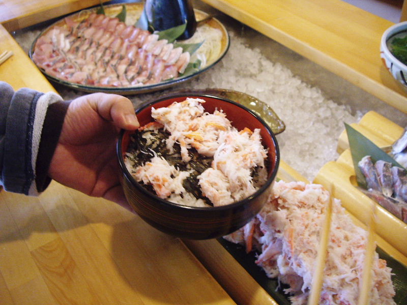 まずはご飯の上にカニをたっぷり敷いて