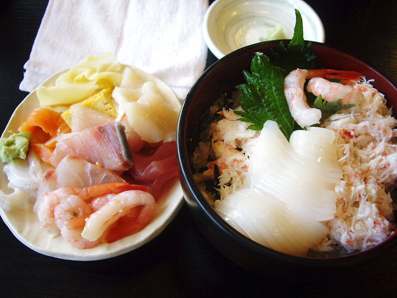 私は 「カニイカ丼」とお刺身1皿。