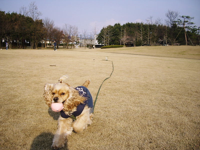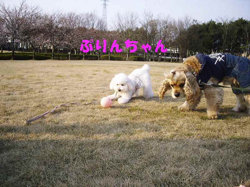 ぷりんちゃんもボールを追っかけて跳び回っていました。