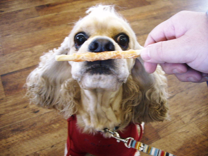 おやつをもらうために待つ。