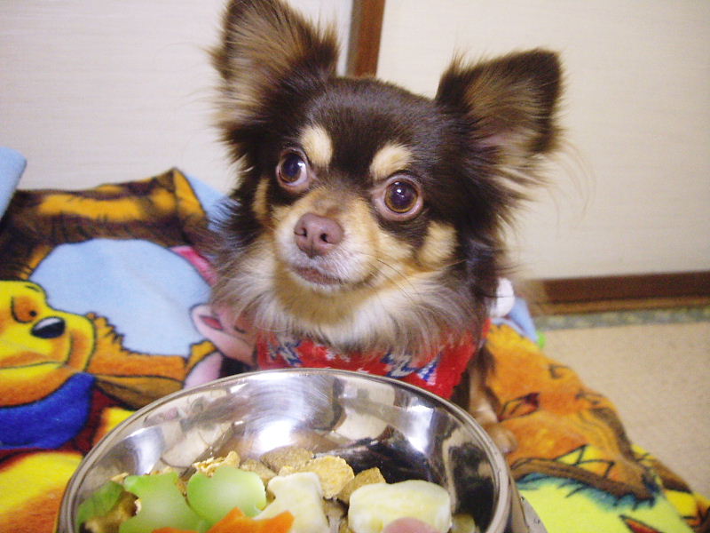 おやつを見つめるだるぶるとボニートくん。