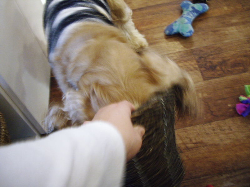 前回からのお気に入りおもちゃで引っ張りっこ♪