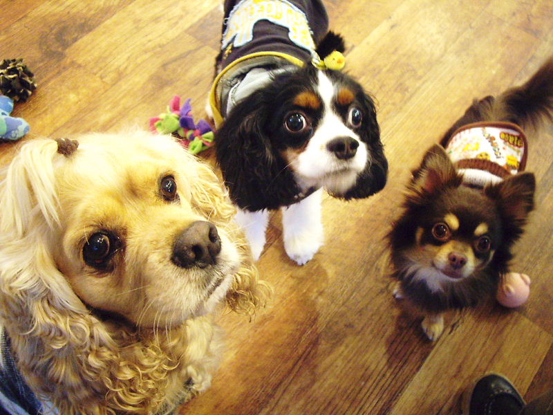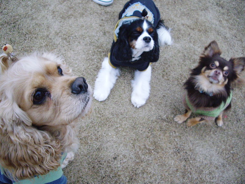 だるパパに餌付けられるワンコ達♪