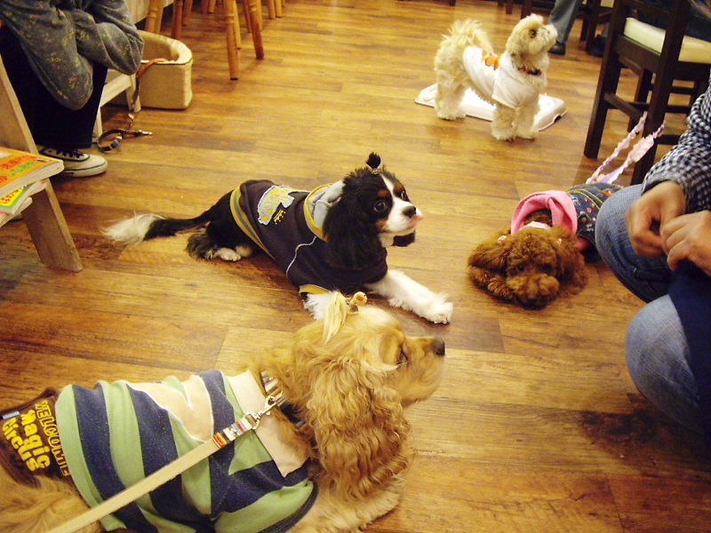 カフェに入る前に走り回るだるぶる。
