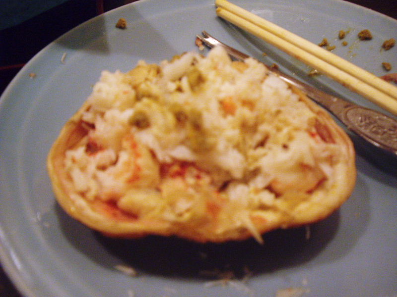 甲羅の中に身をいっぱいにしてから食べたり。。。