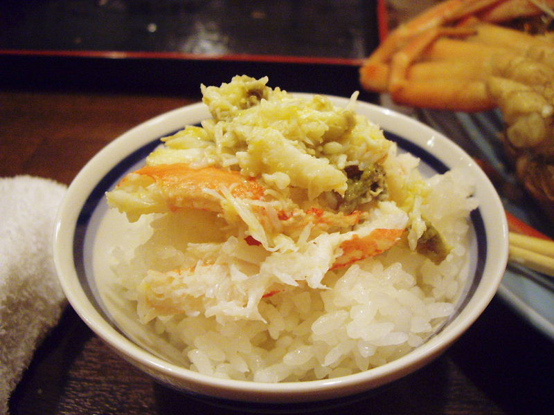 ご飯の上にカニ味噌と一緒に乗っけて食べてみる。