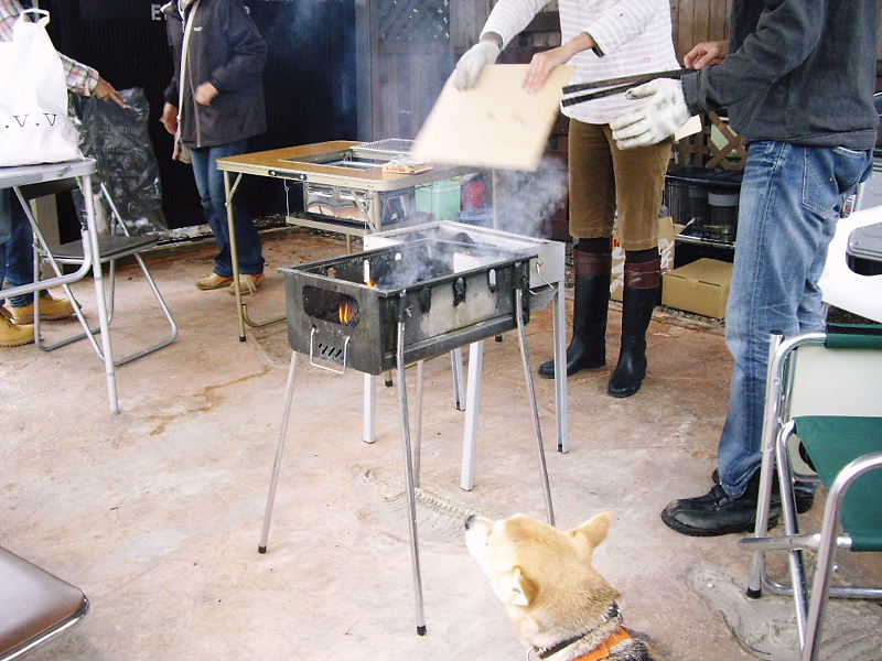 akotanさんとパパさんはBBQセットを持ってきて設置、