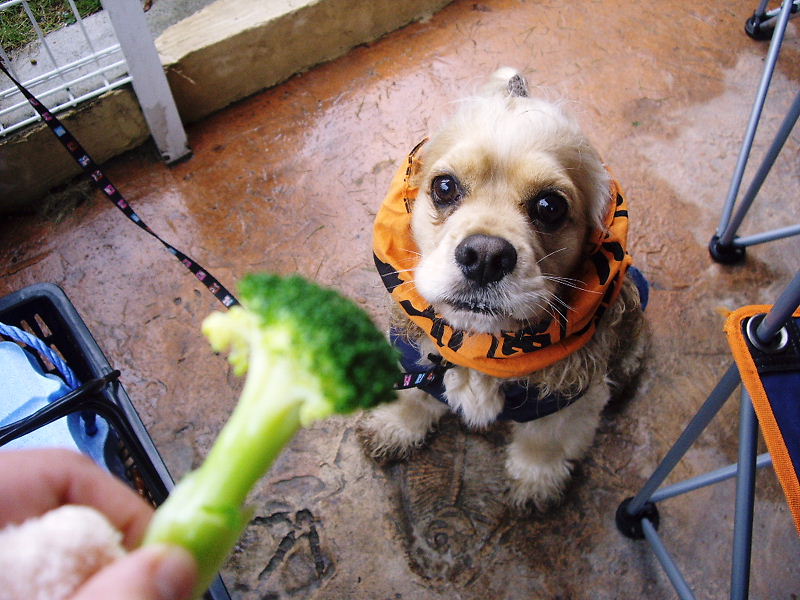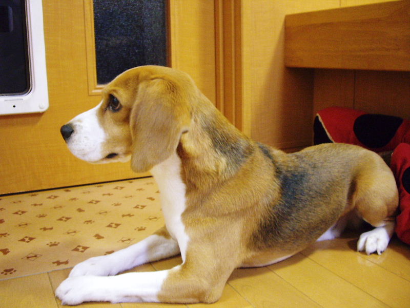 晩ご飯をもらうのに伏せをして待つガオくん。