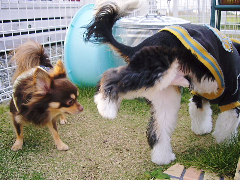 追いかけっこ中、ゴロンと転がるぶるが笑えます^m^