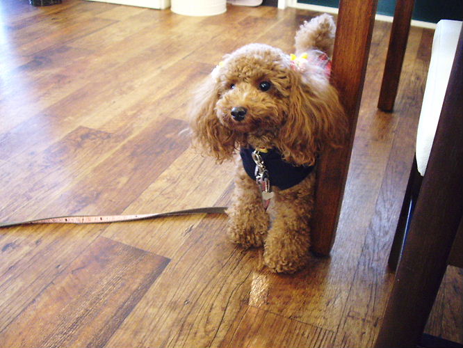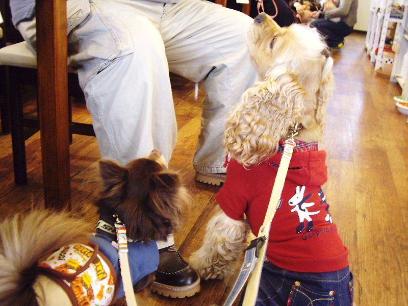 カフェへ戻るとトイプーちゃん達のしつけ教室が行われていました。