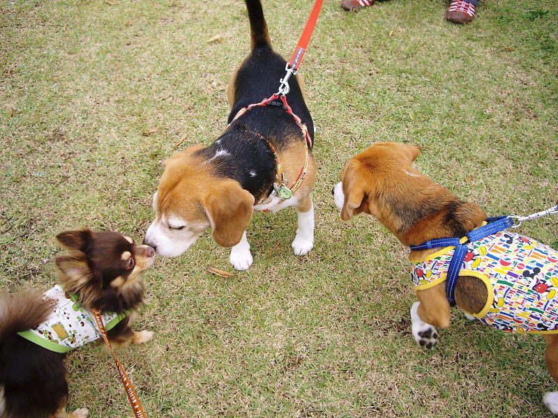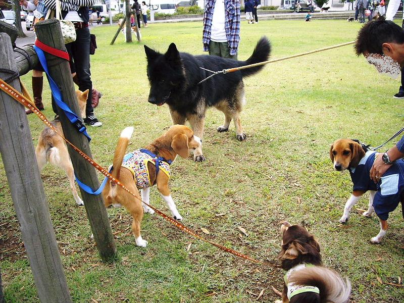バザーに来ていた沢山のワンコとご挨拶した様子を