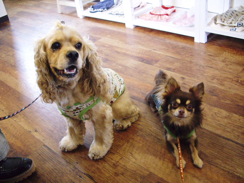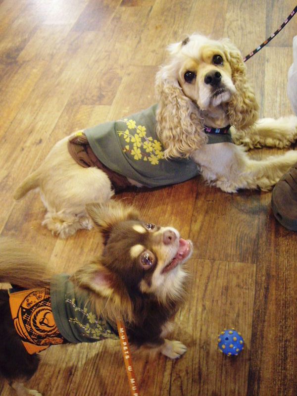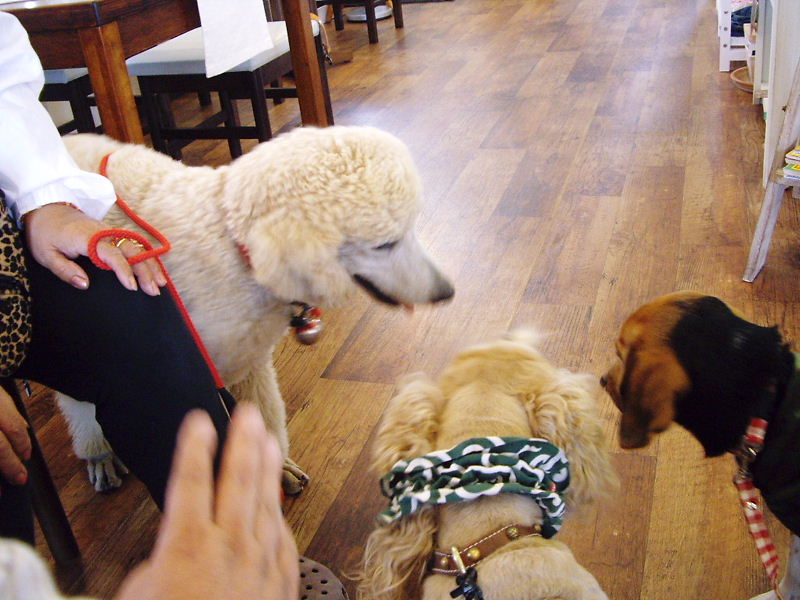カフェの中でお客さんワンコと交流会。