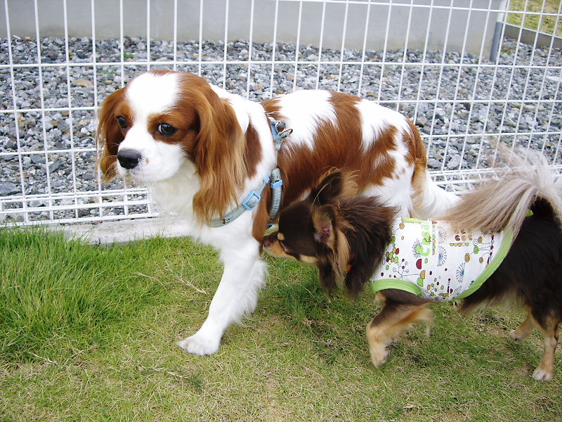 キャバリアくんは迷惑そうにしていました。。。