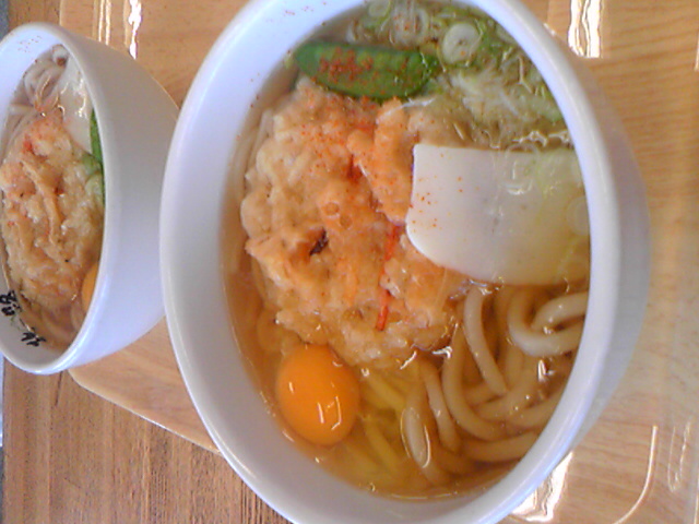 呉羽SAの「てんぷらうどん」に生たまごトッピング。