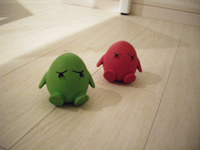 家から持って行ったみどりちゃんとぴんくちゃん。