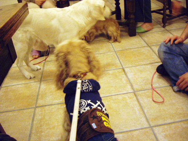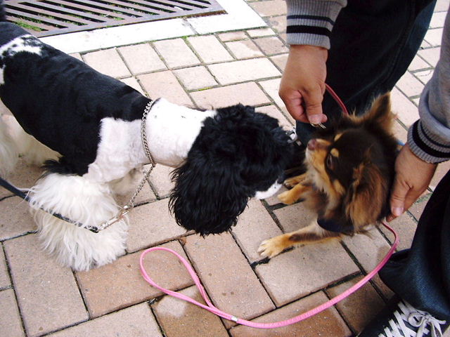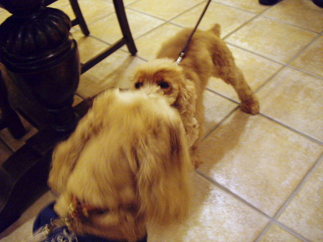 (後ろでうちのぶるがトイプーちゃんと仲良くしています。