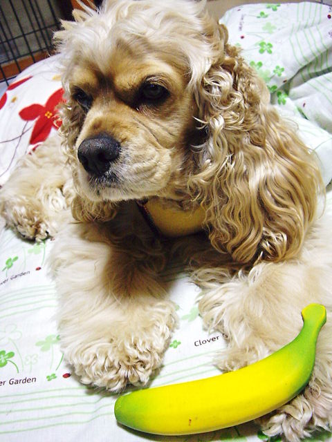 バナナ(ぴ~ぽ~おもちゃ)で「待て」