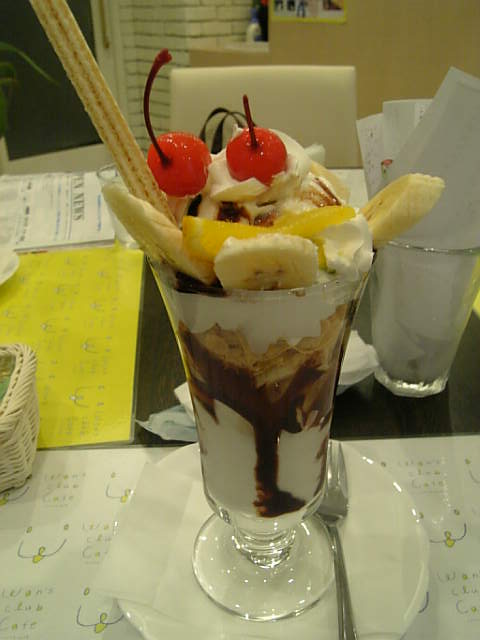 だるパパは抹茶パフェ、私はチョコバナナパフェを食べた。