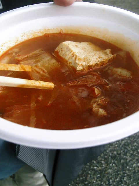 結局、あんまり人が並んでいないチゲ鍋を買った。