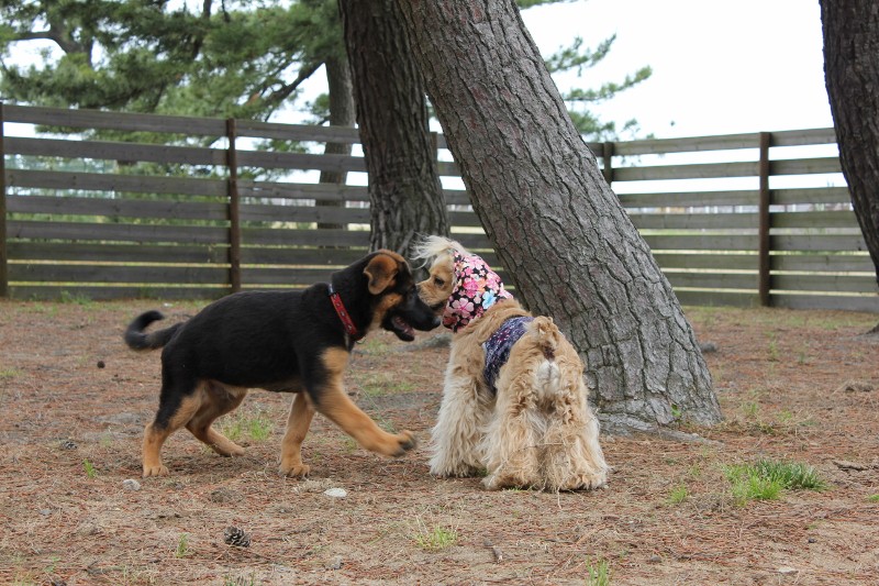 先輩ワンズに囲まれてちょっとビビッて・・・