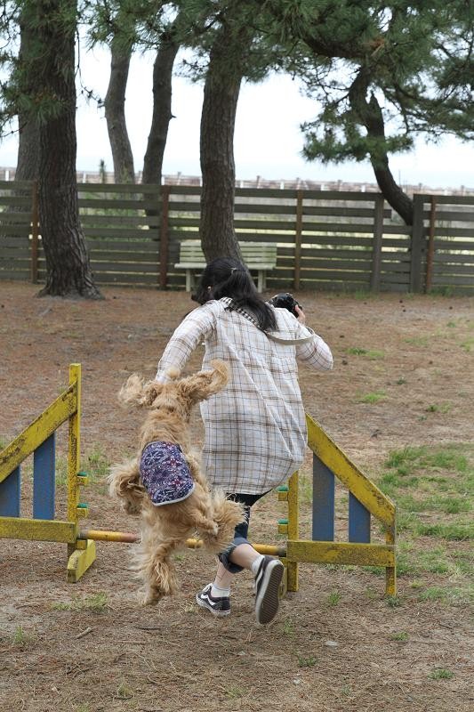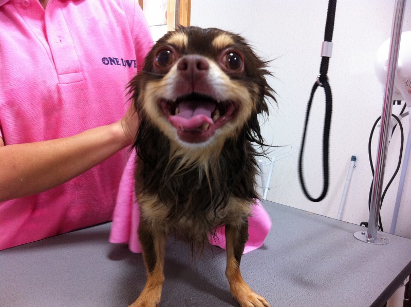 ぶるは嫌だったみたい。。。逃げる、吠える。