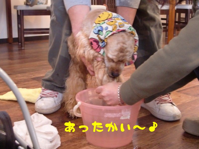 アミーゴのおねーさんがバケツにお湯を入れてくれて