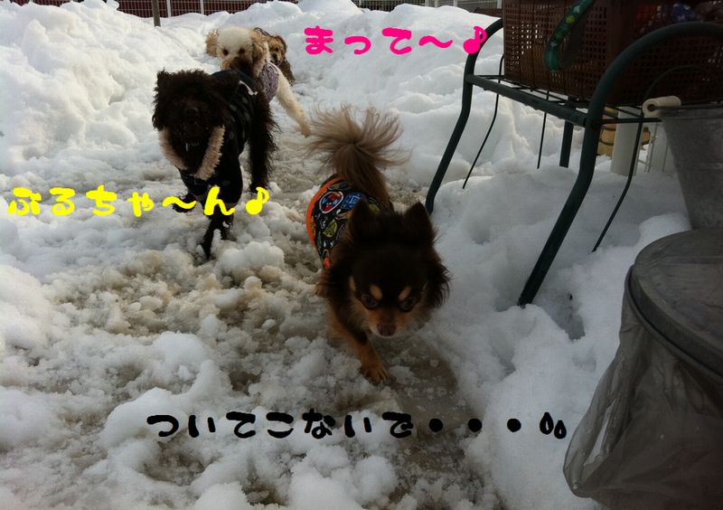 フリケリ&だるぶる、雪のドッグランを駆け回る♪