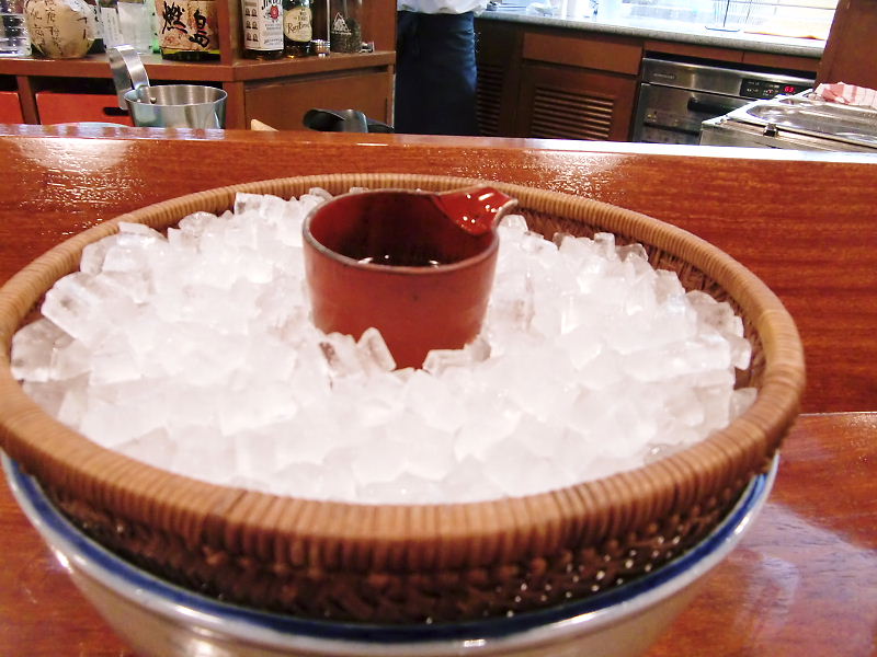 ざるに氷いっぱい敷きつめた中に置いて