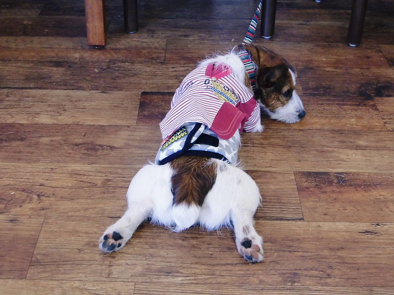 リードはカフェで繋ぐのにちょうどいい長さにしてもらい